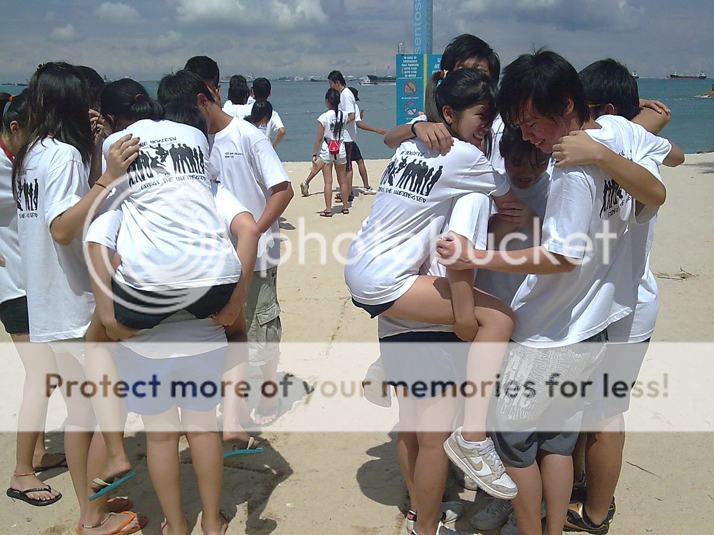 den off to be axis .. SL meeting den briefing . den to our freaking cold room lala. den wait wait wait .. unpack.. den wait again.. freshies came yeap!! so briefing started make flag , bonding.~~ all dis regular stuff cheers~~~ yea in de mid of making flag i cut my hand while.. the scissors slice through my left hand middle finger!!lol so the rest u know hahaha ok la the 1st day game was butter hill, waterbomb soccer, 100 no NG, bucket lift and water bom transfer lol.. yea yea long game too long to explain each so ok that it lol.. then dinner time den our nightwalk freaking boring la!!! my team was like the last team to go for the walk because of the numbering system,,zzz so we waited like more den 1 and a half hour for our turn.. by the time it was aldri like 12 plus zzzz.z...n i mean AM.... ok .. the SLs slept all very late... including me haha was damn funny.. i brought my slping stuff and ended up not using it at all or rather not being able to use it..im not complaining.. i just find it damn funny lol.. im nice =x.. i shared my slping bag with shihao and my boy HAHAHA... so three person squeezing on one slping bag..my boy cope my pillow n blankets. so i haf to slp like a mummy HAHAHAHA wrapped myself up with my own bare hands lol ok la end of the night byebye Day 2 Camp woke up freaking early again lol only 2 hours of sleep HAHAHA Sentosa day!! thought it was going to be fun n easy yes!! its fun but WTFREAKING TIRING!!! morning all de way to 8 pm zzzzzzzzzzzzzzzzzzzzzzzzzzzzzz tired like siaoz climb mountain walk walk walk tired siakz.. sun like @#%^&@%# zz but shiok can tan n yes i was tanned like bbq pork! Terrible dinner so i bought popcorn and had popcorn for dinner lol bused back to school lol night performance lol